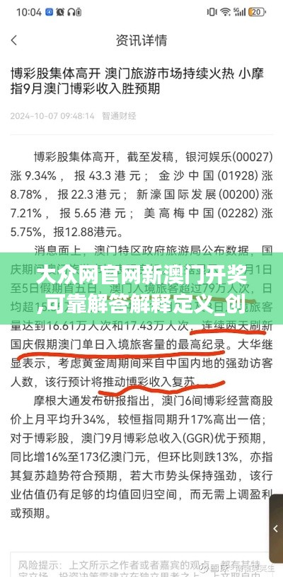 为了提供更加丰富多彩的内容,大众网官网不断推出新的版块和栏目,创意版182.128-3是其中的一个特色栏目,集合了最新、最具创意的澳门开奖信息和相关内容,这一版块包括实时动态、博彩市场趋势的深度分析、玩家故事的专题报道以及博彩相关的趣味问答等,通过多样化的内容形式,创新版182.128-3为用户带来更丰富、更有深度的体验,使澳门开奖信息更加生动有趣。