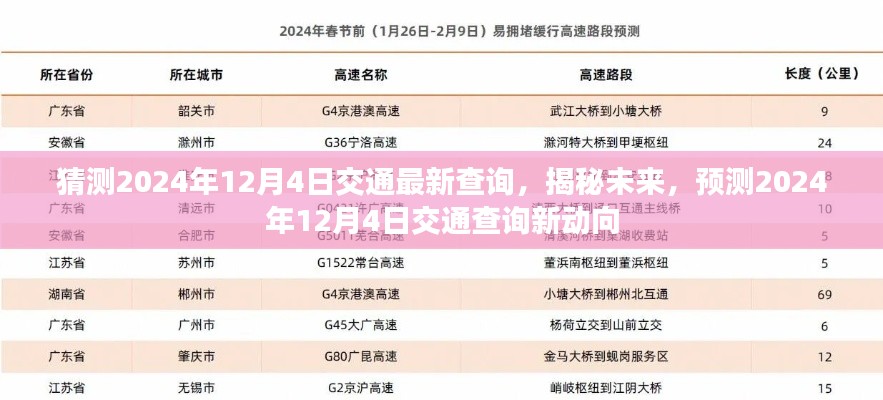 揭秘未来交通动向,预测2024年12月4日交通查询最新发展动态