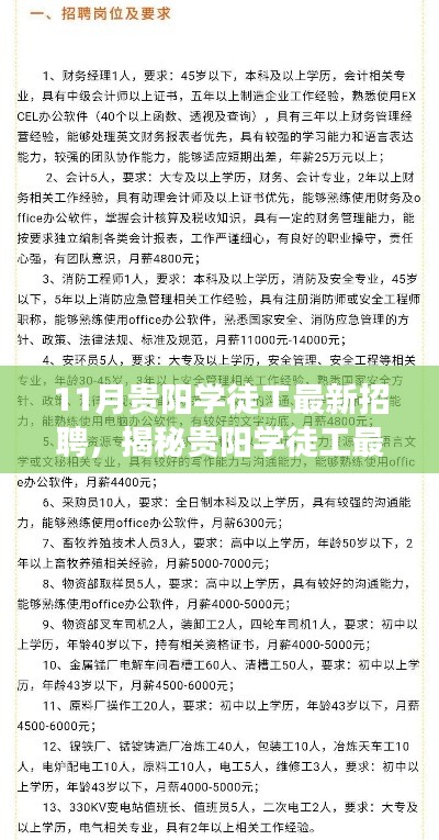 随着科技的飞速发展,贵阳这座美丽的城市正迎来一场前所未有的技术革新,在最新一轮的招聘热潮中,学徒工岗位也迎来了前所未有的科技变革,我们将聚焦于这个领域的最新招聘亮点,带您领略一场关于高科技产品的盛宴,展现科技如何改变生活,激发每一位科技爱好者的无限兴趣。